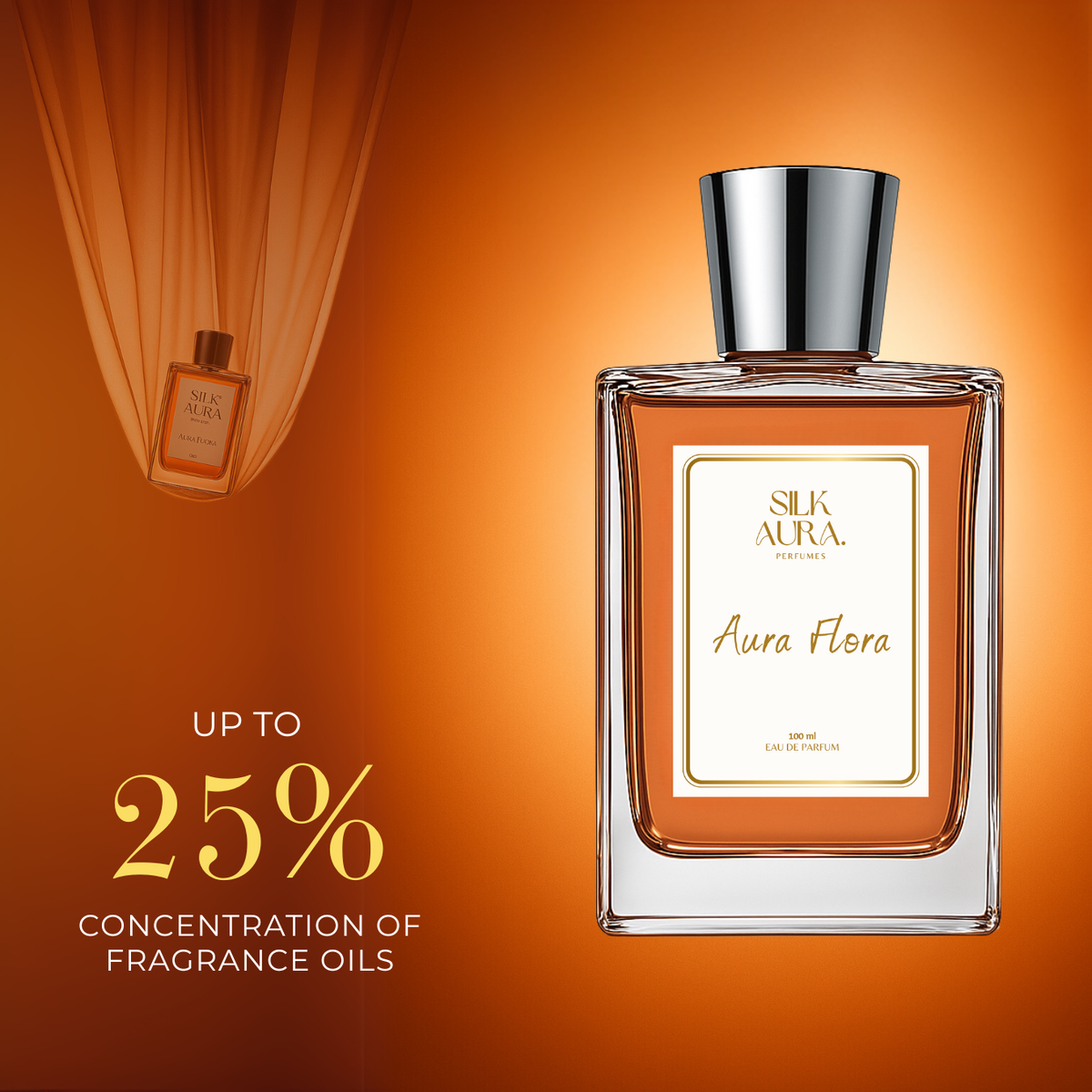 Discover the luxury of SilkAura Aura Flora, a long-lasting unisex Eau De Parfum that captures elegance and sophistication. This exquisite fragrance blends fruity, floral, and warm notes to create an unforgettable scent experience. The fragrance opens with the fresh, juicy sweetness of Pear, followed by a delicate heart of Jasmine and Lavender, adding a soft floral aura. The base of Vanilla and Patchouli enhances the composition with warmth, depth, and a sensual finish. Designed for both men and women, Aura Flora is perfect for daily wear, luxury occasions, and premium gifting. Its 100ml sleek bottle embodies SilkAura’s signature style—refined, elegant, and timeless. Enhance your presence with SilkAura Aura Flora – a scent that speaks of confidence, charm, and beauty.